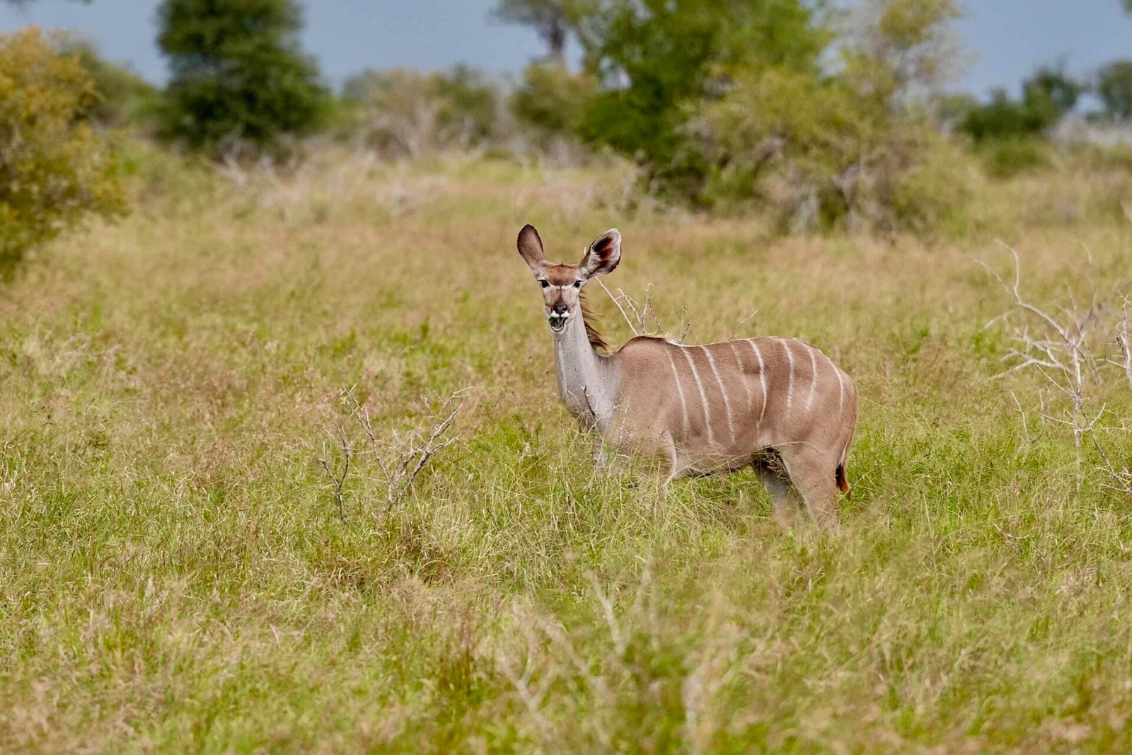 Eager to uncover more of Kruger’s secrets, we ventured deeper into the park, taking lesser-known routes in search of predators. Though the landscape was quieter, we marveled at sightings of elephants, giraffes, gazelles, buffaloes, kudus, and more. Despite our hopes for a glimpse of a male lion, we were content in the presence of a lioness and the myriad other creatures that crossed our path.